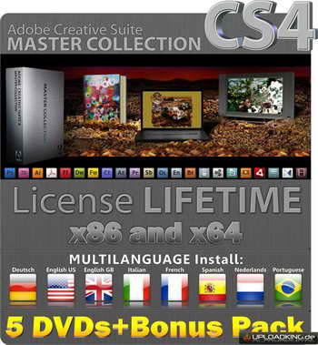Adobe Creative Suite 4 Master Collection (內含Acrobat Distiller 9.Adobe Acrobat 9 Pro.Adobe After Effects CS4.Adobe Bridge CS4.Adobe Contribute CS4.Adobe Device Central CS4.Adobe Dreamweaver CS4.Adobe Drive CS4.Adobe Encore CS4.Adobe ExtendScript Toolkit CS4.Adobe Extension Manager CS4.Adobe Fireworks CS4.Adobe Flash CS4 Professional.Adobe Illustrator CS4.Adobe InDesign CS4.Adobe LiveCycle Designer ES 8.2.Adobe Media Encoder CS4.Adobe OnLocation CS4.Adobe Photoshop CS4.Adobe Pixel Bender Toolkit.Adobe Premiere Pro CS4.Adobe Soundbooth CS4.Mocha for After Effects CS4) 英文正式版 (5DVD+1CD 此套售價900元免郵資不再贈片)